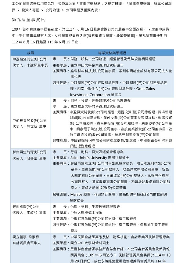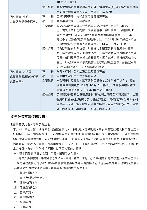 > 投資人專區 > 公司治理 > 董事資訊及多元政策
