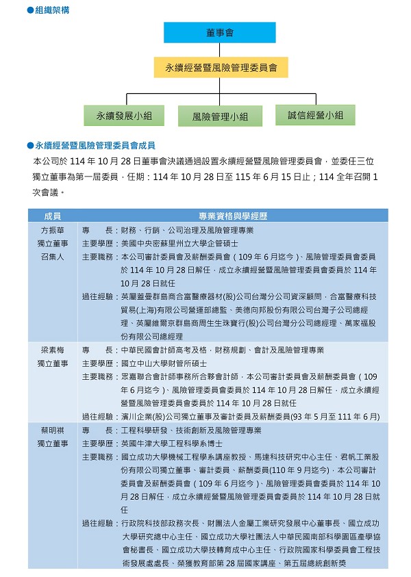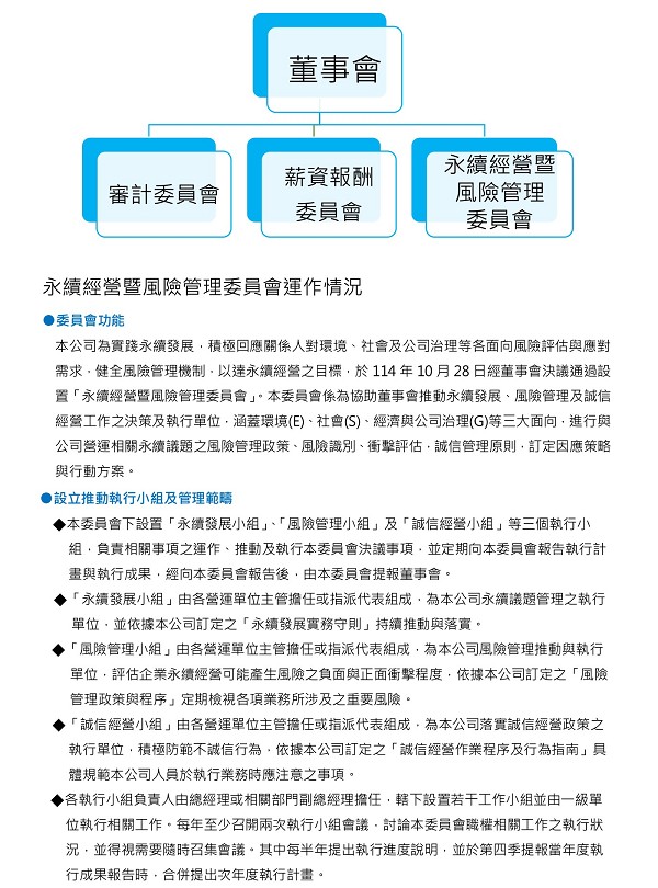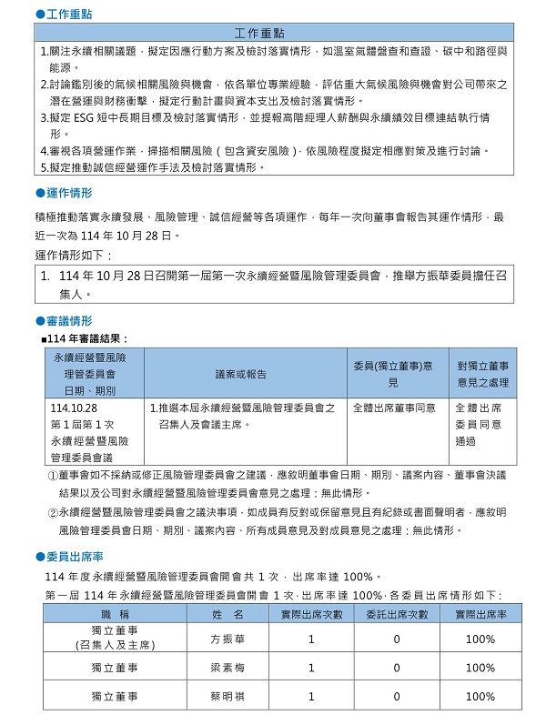 > 投資人專區 > 公司治理 > 永續經營暨風險管理委員會運作情形
